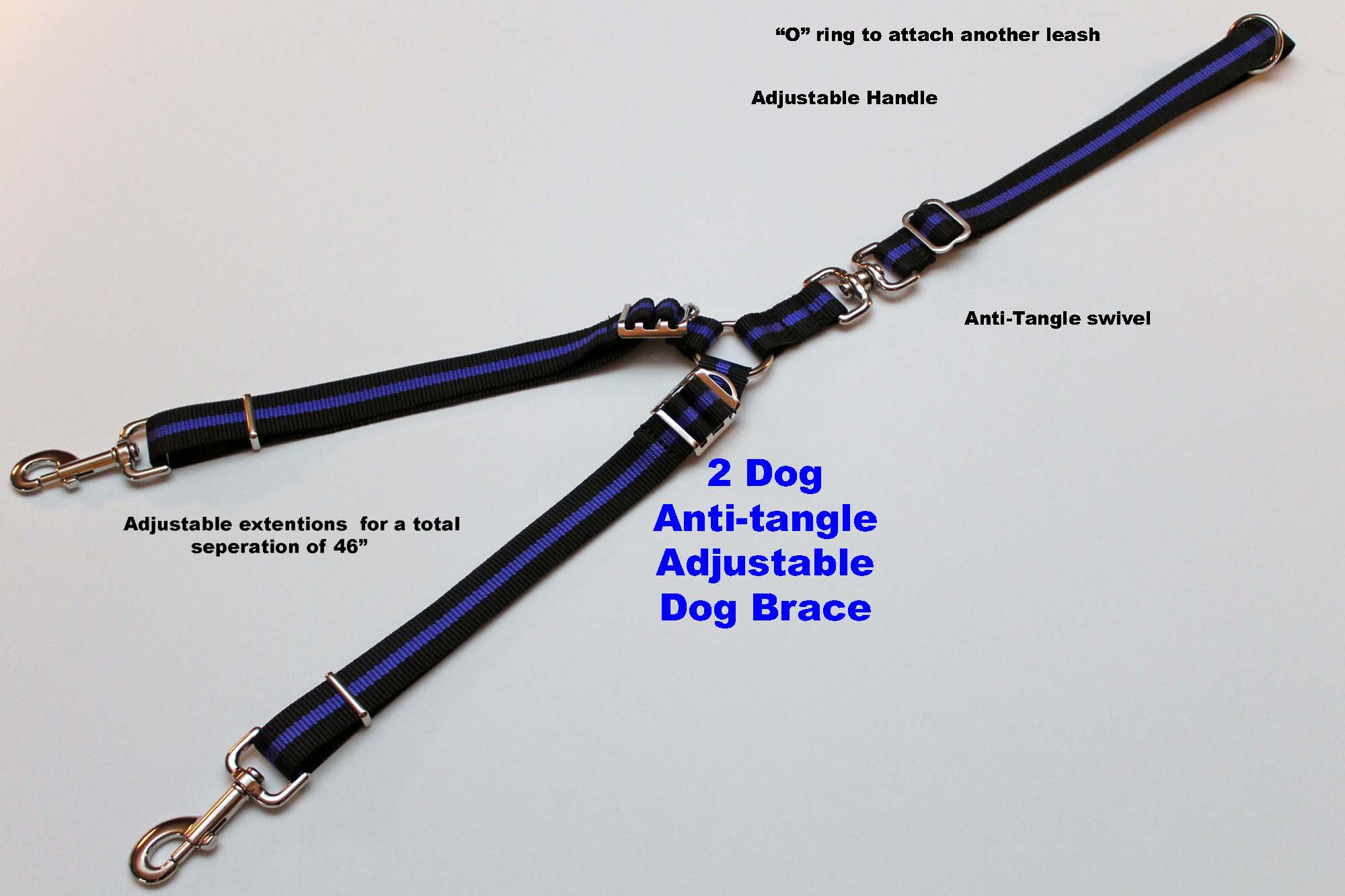If you have more than one dog, walk them at the same time with this two-dog brace. This multi dog-walking brace is part of our Blue Line Collection and features a thin blue line on the brace to show support of law enforcement.