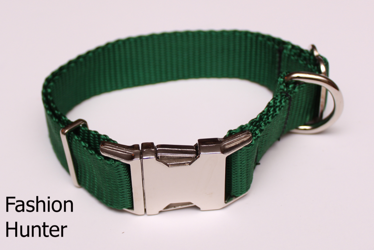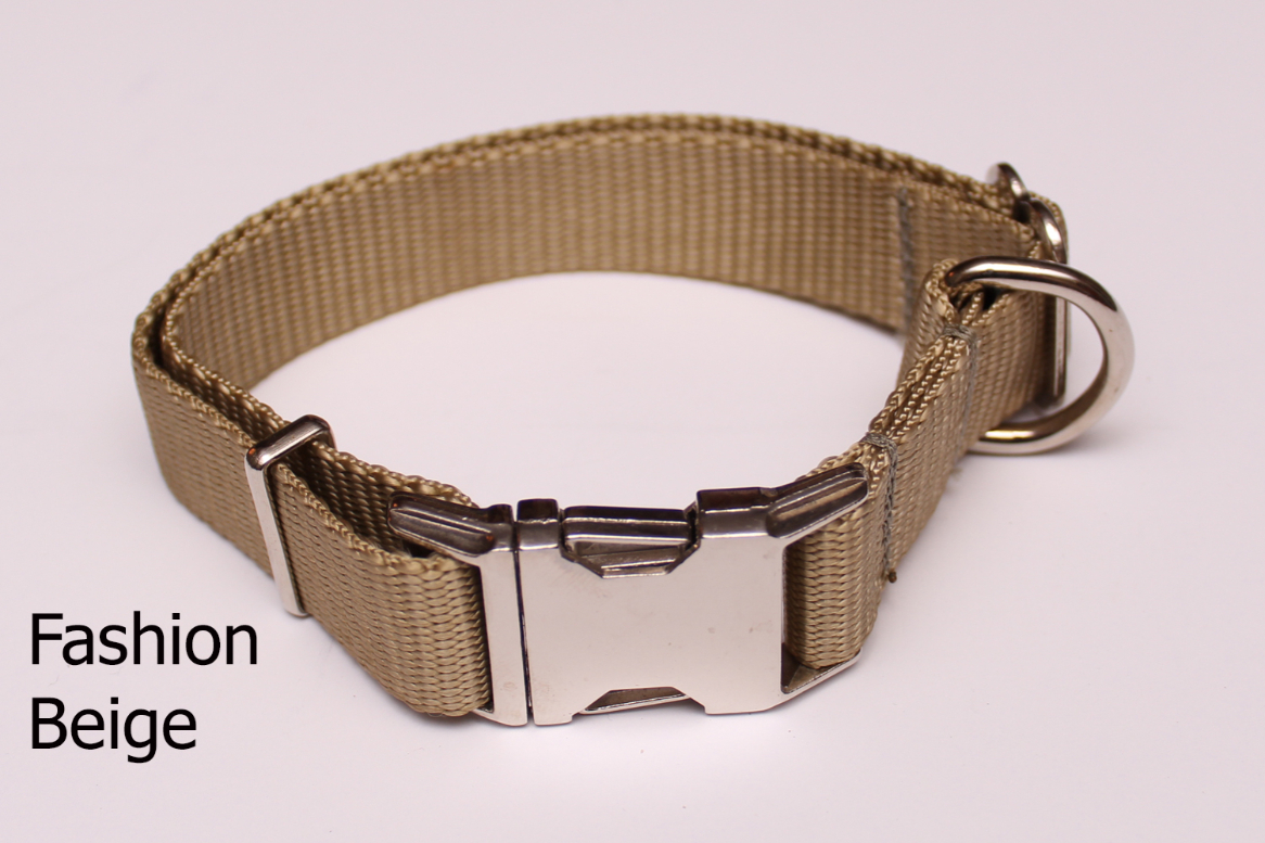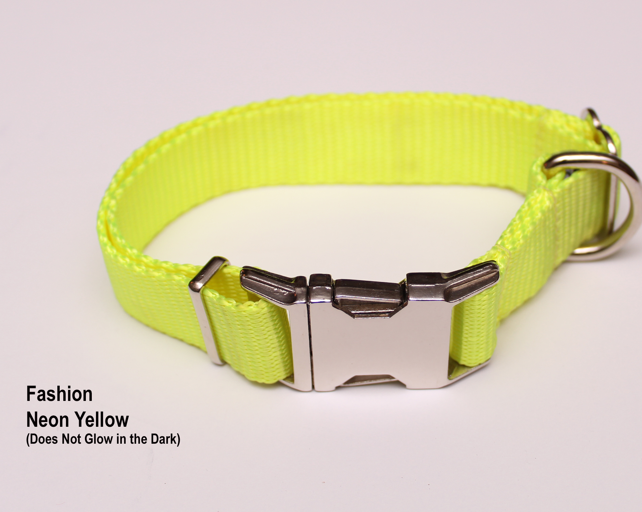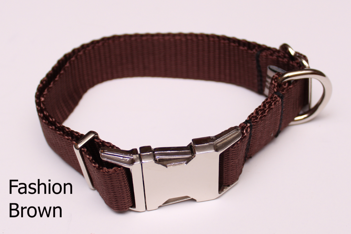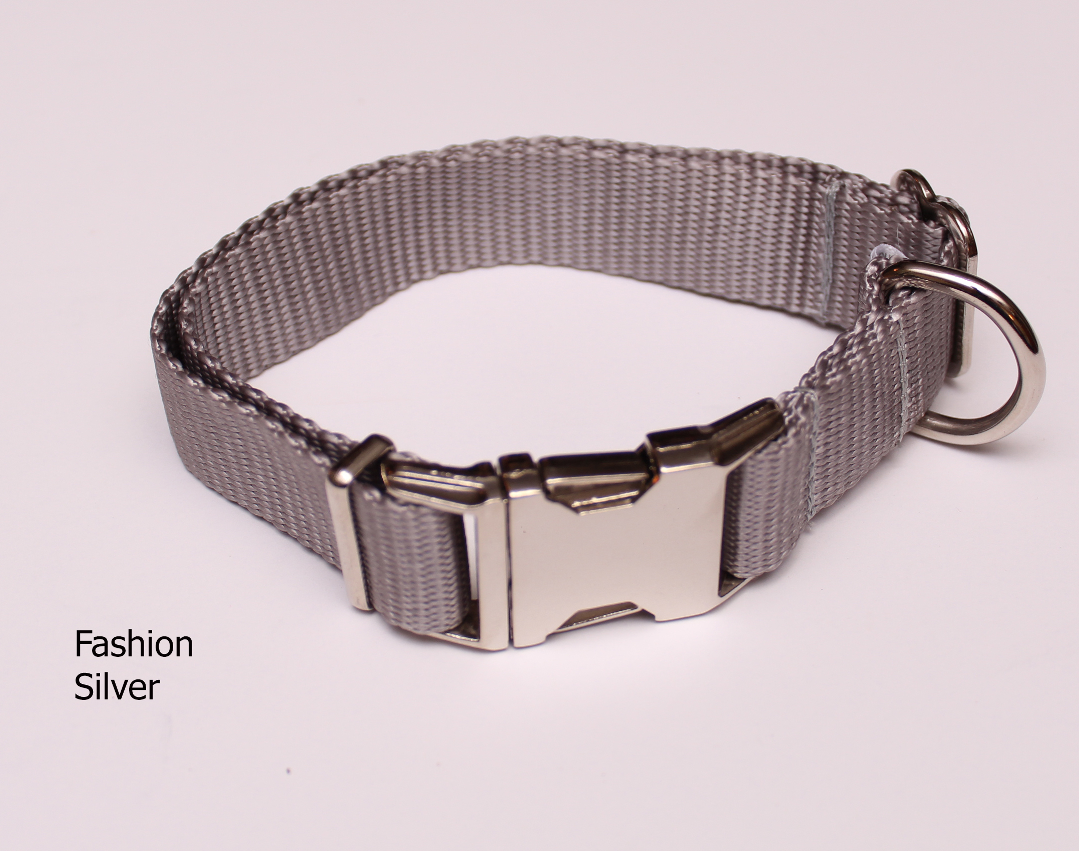Long-lasting dog collars are hard to come by with the exception of the collection of quality dog collars found in the Standard Collar Fashion Series. The dog collars in this collection are made in the USA using the finest materials, including heavy-duty, nickel-plated steel and 1-inch nylon with a tensile strength of 6000 lbs. Choose from different colors including black, brown, burnt orange, hot pink, hunter, lime, mellow yellow, navy, neon orange, neon yellow, olive, purple, red, royal, and silver.